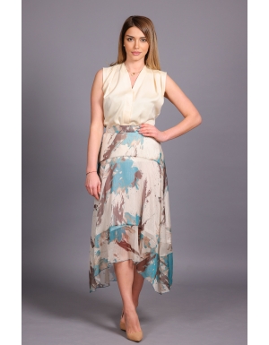 Široka lepršava suknja od dezeniranog muslina, postavljena viskoznom postavom